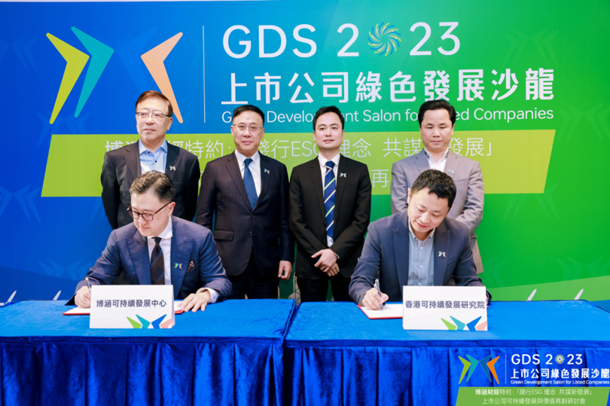 此次沙龙,博涵可持续发展中心达成了一项重要战略合作。在粤港澳大湾区上市公司联合会创会主席钟学勇、全港各区工商联首席会长卢锦钦博士、深圳市产业园区协会会长蔡岳、深圳市前海一带一路法律服务联合会会长杜春的共同见证下,博涵可持续发展中心代表麦超杰先生与香港可持续发展研究院代表张亚龙博士正式签订合作协议。此次合作将为博涵可持续发展中心增添更多专业力量和优质资源,未来双方将共同为企业打造高质量的ESG发展和交流平台,为可持续发展事业贡献力量。